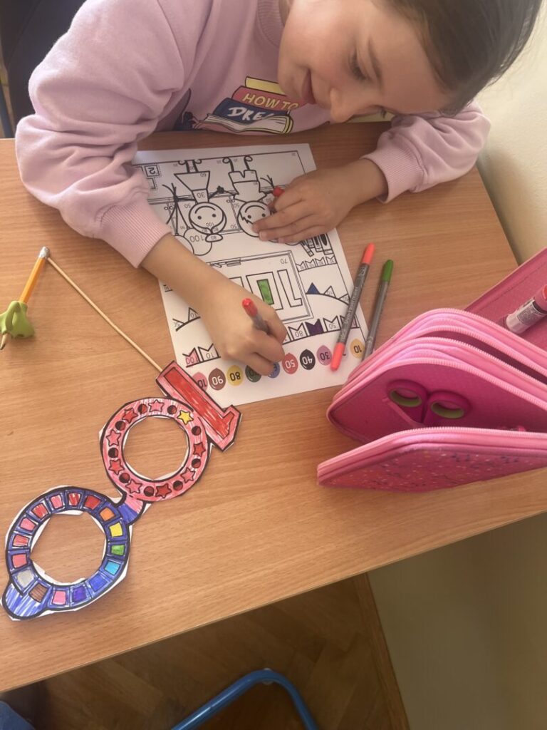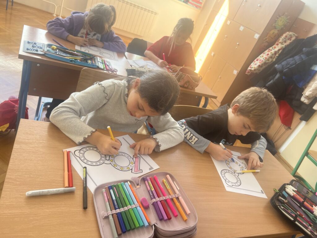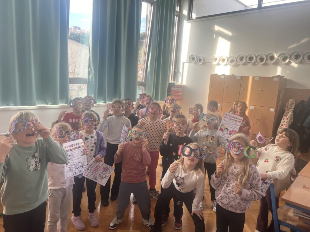 Tijekom dana sudjelovali smo u raznim kreativnim i edukativnim aktivnostima. Bojali smo, rezali i ukrašavali različite oblike s brojem 100, izrađivali plakate i ukrase te na zanimljiv način učili kroz igru. Posebno veselje izazvala je izrada naočala s brojem 100 koje su učenici sami izrezali, ukrasili i s ponosom nosili.