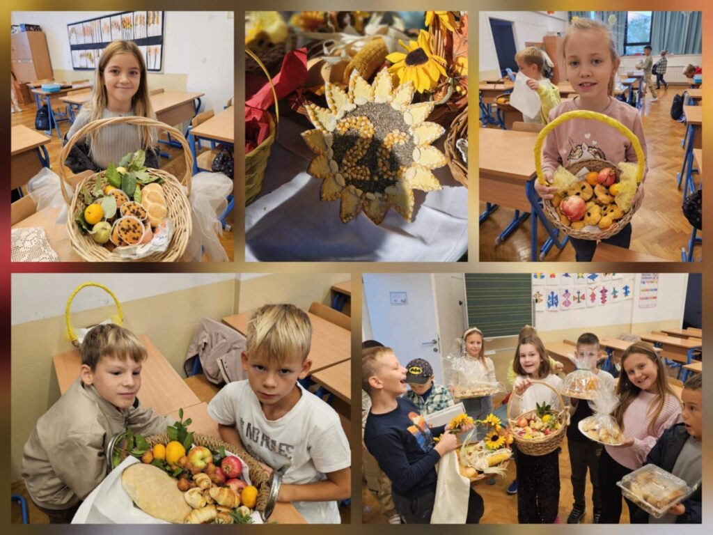 Učenici 2. c razreda obilježili su Dan kruha i zahvalnosti za plodove zemlje u pravom svečanom ozračju. Zajedno sa svojim roditeljima pripremili su najmirisnija peciva, kruhove i kolače, a raznoliki jesenski stolovi bili su ispunjeni bojama, mirisima i toplinom doma. U školskom atriju okupili smo se kako bismo zajednički blagoslovili plodove zemlje i zahvalili na svemu što nam priroda daje. Učenici su ponosno predstavljali svoje pekarske delicije, a zajedničko druženje ispunilo je prostor radosti, zahvalnosti i zajedništva koje ovaj dan čini posebnim.