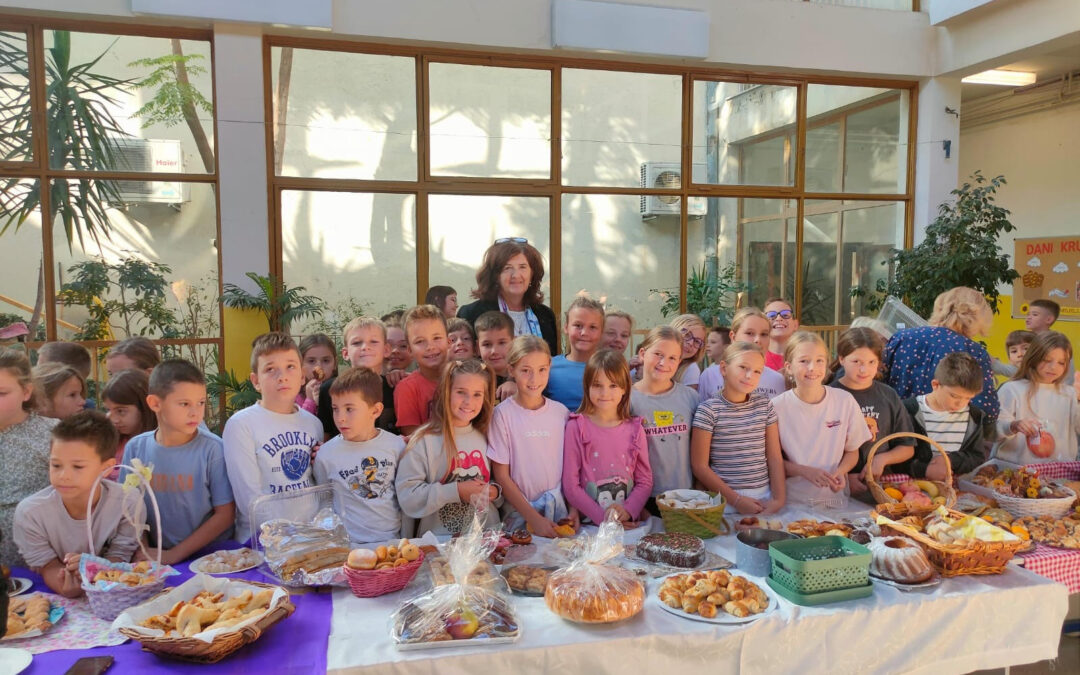 Učionica je mirisala po svježe pečenom kruhu i pecivima koje su učenici donijeli od kuće i koje su sami umijesili uz pomoć roditelja. Djeca su ponosno izložila svoje košarice pune kruha, peciva, voća i jesenskih plodova, a sve je bilo ukrašeno listovima, bundeva i cvijećem.