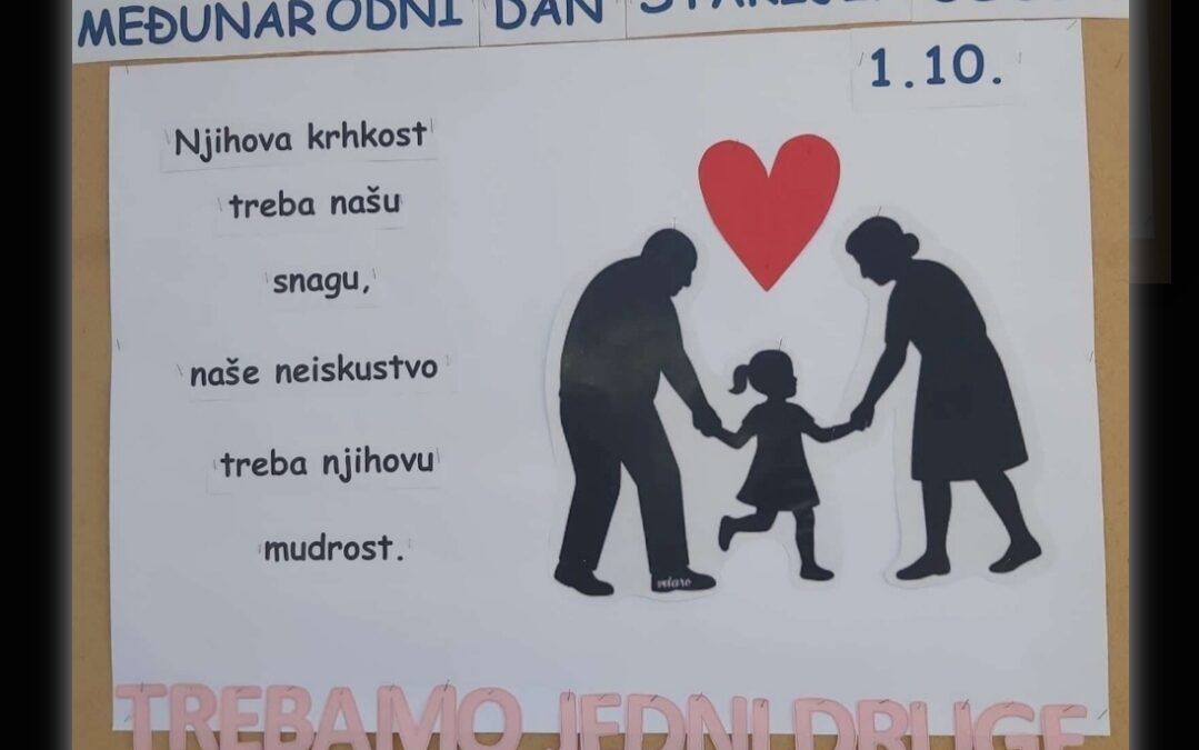 I ove godine su prigodom obilježavanja Međunarodnog dana starijih osoba naši učenici svojim djedovima i bakama pokazali koliko im je važno njihovo iskustvo kao i vrijeme koje provode u razgovoru s njima. Tako su s njima napravili intervju na temu Djedovi i bake u školskim klupa. Iz intervjua smo doznali kako su im djedovi i bake u školu najčešće išli pješke, a neki i u trajanju do sat vremena. Kao uniformu su nosili plave kute i papuče koje bi obuli prije ulaska u učionicu.