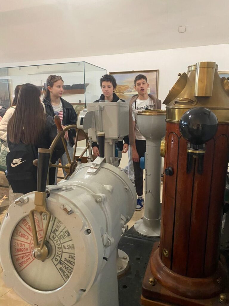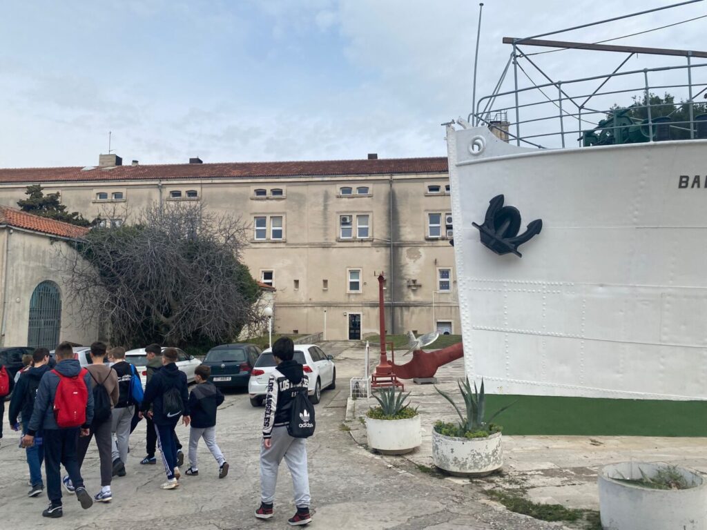 Uz stručno vodstvo nekoliko kustosa među kojima je bila i bivša učenica naše škole Branka Teklić, učenici su imali priliku upoznati i razgledati brodove, podmornice, torpeda, opremu brodova, ronilačka odijela, povijesne odore pomoraca i uvjeriti se da je Hrvatska stoljećima mediteranska zemlja pomoraca.